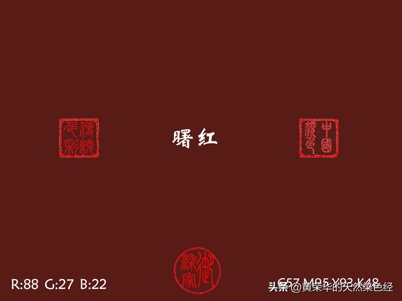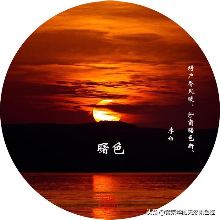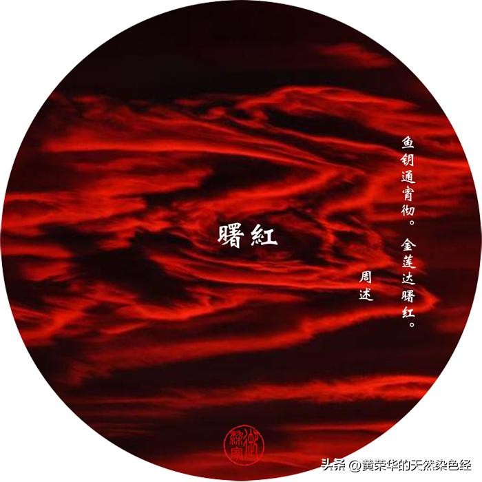 染曙红,以染匠的经验,可用茜草、苏木等红色染料,加上黄栌或大黄等黄色染料,以明矾,皂矾做媒染剂调整颜色,就可以染出曙色来。