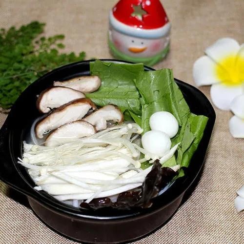 调好味道以后,放入甜不辣,金针菇,鹌鹑蛋,鱼丸,香菇,只留下青菜和土豆粉,煮开后放入青菜,最后放入土豆粉。