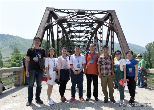 在桥中间有一道线,是中朝两国国境线,桥下的鸭绿江国境以岸边陆地为界,江面共用,时常可以看到朝鲜人民用最为原始的方式运输木材——放排。