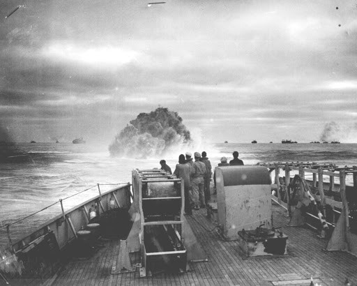 军舰人员在观察深水炸弹效果