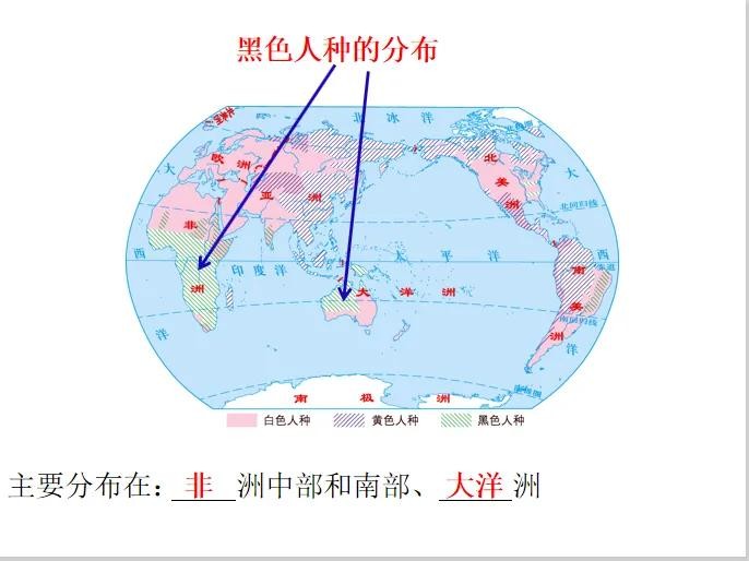 非洲大陆是全世界黑色人种共同的故乡,黑色人种主要集中分布在非洲中部和南部、大洋洲和美洲居住着少量的黑人。
