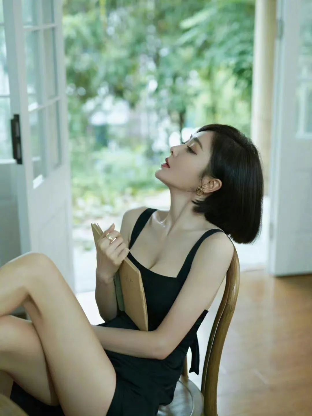 一套简单吊带连衣裙都能穿出风格,果然美女穿什么都能出圈,秦岚不久前在在微博上分享了几张美图,她坐在椅子上身穿一身黑色吊带裙,长腿微曲,头微微上扬,手中拿着一个画本,这完美的脸蛋和下颌线,让人羡慕不已,加上饱满的身材,让人看了直流鼻血,内娱还得看女明星呀。