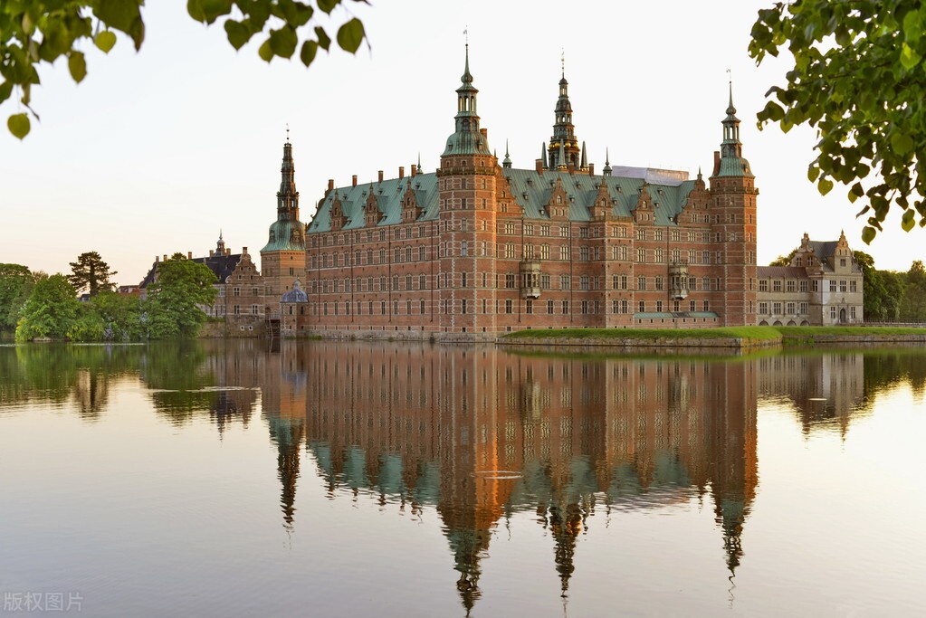 距离哥本哈根西北35公里的小城希勒勒(Hillerød),这是国王的夏宫——菲特烈堡(Frederiksborg,丹麦语Frederiksborg Slot),又称为“丹麦的凡尔赛宫”。这个占地三个小岛的宫殿非常精美,由克里斯钦四世,这位丹麦著名的规划师,同时也是奥斯陆、斯德歌尔摩的规划师的伟大作品之一,各种文艺复兴色彩的雕塑和喷泉,生动地向人们诉说着一个个充满神秘色彩的北欧神话故事。现在城堡成为丹麦国家历史博物馆,收藏展出皇家艺术品。城堡后面是一个大湖,湖面有一些鸳鸯在戏水,湖后是一个巨型的皇家花园,一个大大的丹麦皇冠图案由园林修剪而成,皇家花园旁的小湖有一群天鹅自由的游弋着,阳光下,这城堡、大湖、小湖、花园还有小动物组成了一幅绚丽多彩的图画,让人流连忘返。