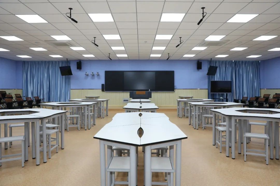 学校积极尝试新技术应用,通过人脸识别技术为学生提供个性化用餐服务;学生洗澡、门禁、安防等全部实现智能化管理;智能声光教室有效过滤蓝光、精确控制频闪,有效缓解学生的视力、听力疲劳,保护学生的视听健康;人工智能教育实验室带动常州地区首个高中学段人工智能教育课程建设……