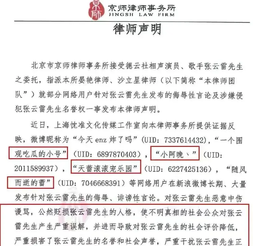 既杨紫之后张云雷的个人工作室也在某平台发出了一条律师函,上面也是点名道姓指出了几个黑粉儿。