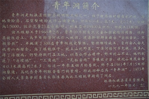 所谓“青年洞”是因参加凿洞的突击队是从全县民工中抽调出来的300名优秀青年,故取名叫"青年洞"。