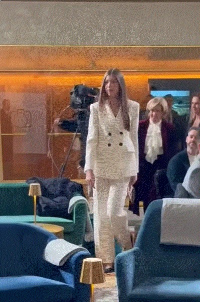 当天,索菲亚公主一身纯白西服套装亮相,显得干净利落,脚上一双平底鞋,却丝毫不影响她的气场,180cm+的身高在此时显得格外有优势。