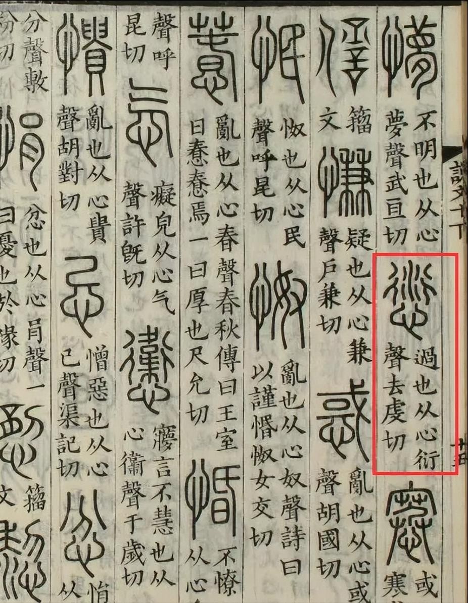 篆文(另一种古代汉字书写形式)中的“愆”字