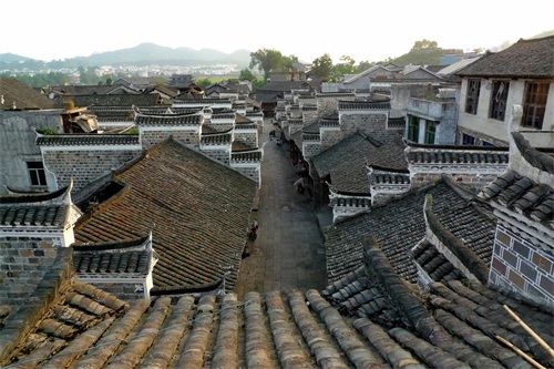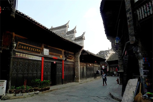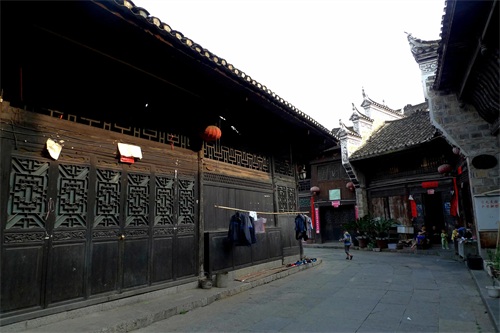 回到古镇时斜阳若影,这是我们行程中难得的好天气,我们在古镇老街慢慢走过。里耶古镇明清古街区位于酉水河的西岸,街区主要包括中孚街、埠平街、万寿街、辟疆街、夹街、河街、菜行和景丰巷等“七街六巷五行”。在老街一两层楼房镶嵌着“红三军指挥部旧址”,这里曾经是贺龙元帅战斗过的地方。里耶古镇的建筑保留着明清时期的土家族建筑风格,飞檐翘角风火墙,老街的商铺鳞次栉比,但游客很少,甚至当地人也不多,空荡荡的感觉。