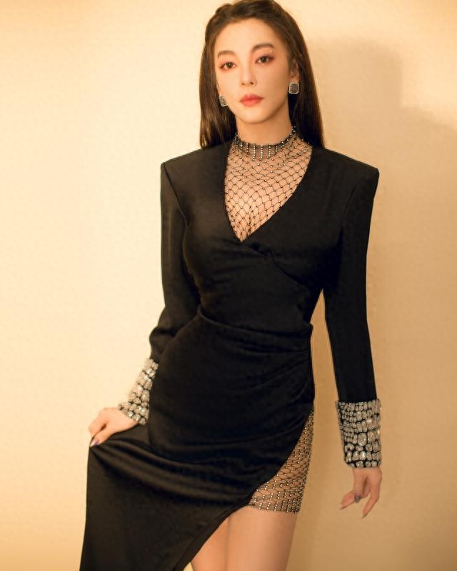 高开叉礼服重在修饰身材,为了凸显它的修身性,大多数人都会选择黑色。跟其它颜色相比,黑色显瘦效果最为显著,但是,黑色色彩暗沉,穿在年轻姑娘身上的话,缺乏生机活力。在这里,我建议年轻姑娘穿黑色高开叉礼服时,往上面点缀水钻元素。水钻自带闪光效果,熠熠生辉的视觉效果,既赋予黑色高开叉礼服活力感,也提升整体造型吸睛度。