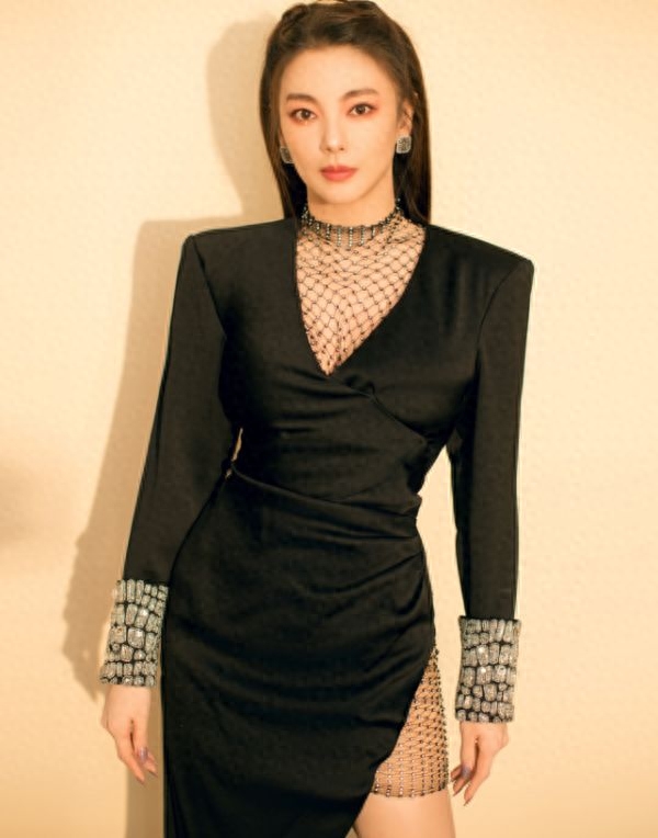 张雨绮这款高开叉礼服中的高开叉设计较为暴露,几乎将左侧大腿全部展露出来,就这种露肤面积而言,虽然提升了整体造型的女人味,但容易产生低俗感。为了避免这种情况发生,我们可以向张雨绮学习,在高开叉处拼接网纱面料。
