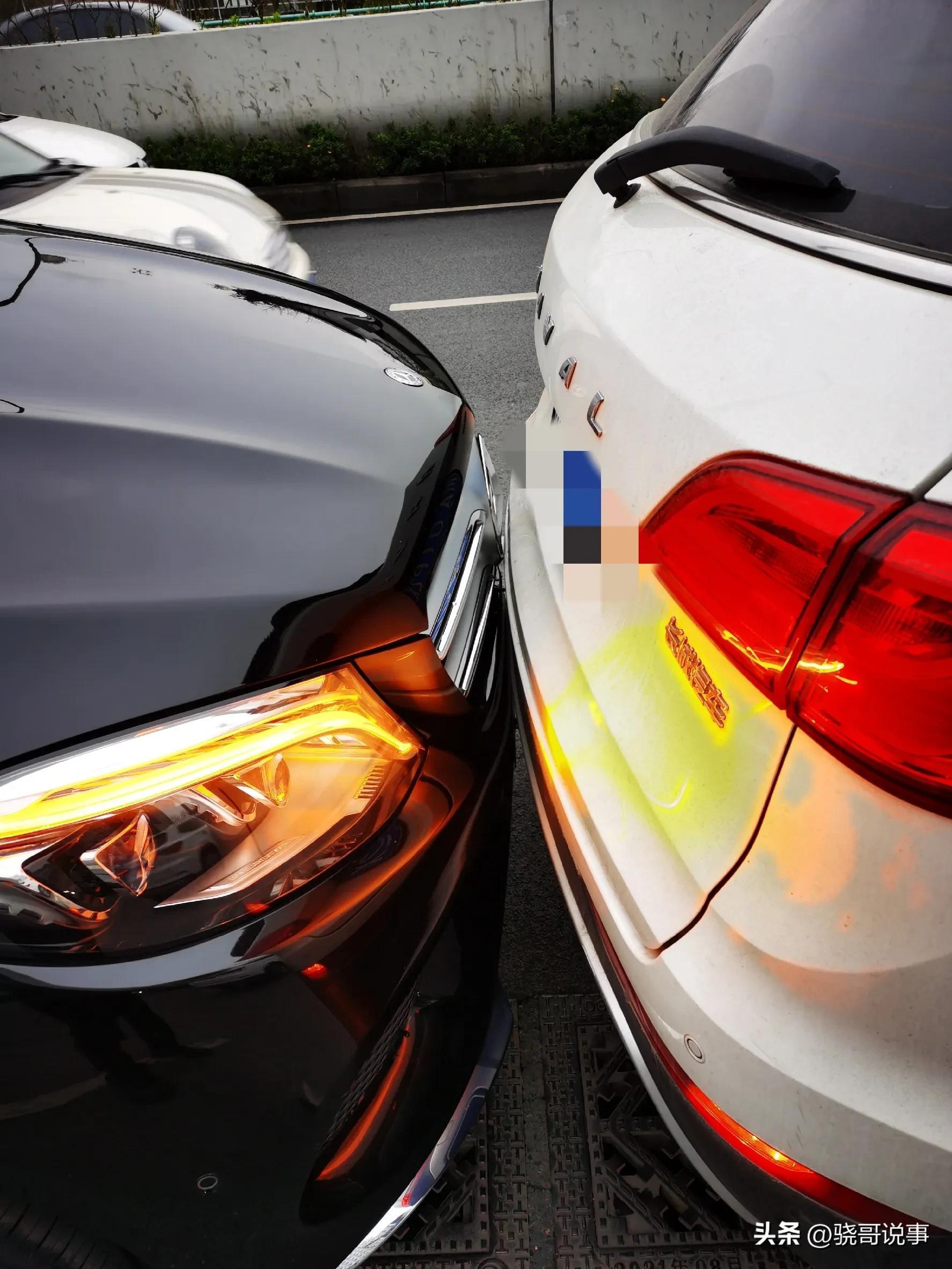 在奔驰车主打电话的间隙,有事故处理经验的我,则开始拍照,先在前面和后面各拍了一张两车全照,两车追尾处也拍了一张,然后让奔驰车主和我一起挪车,避免在高峰期挡住车道被交警处罚。