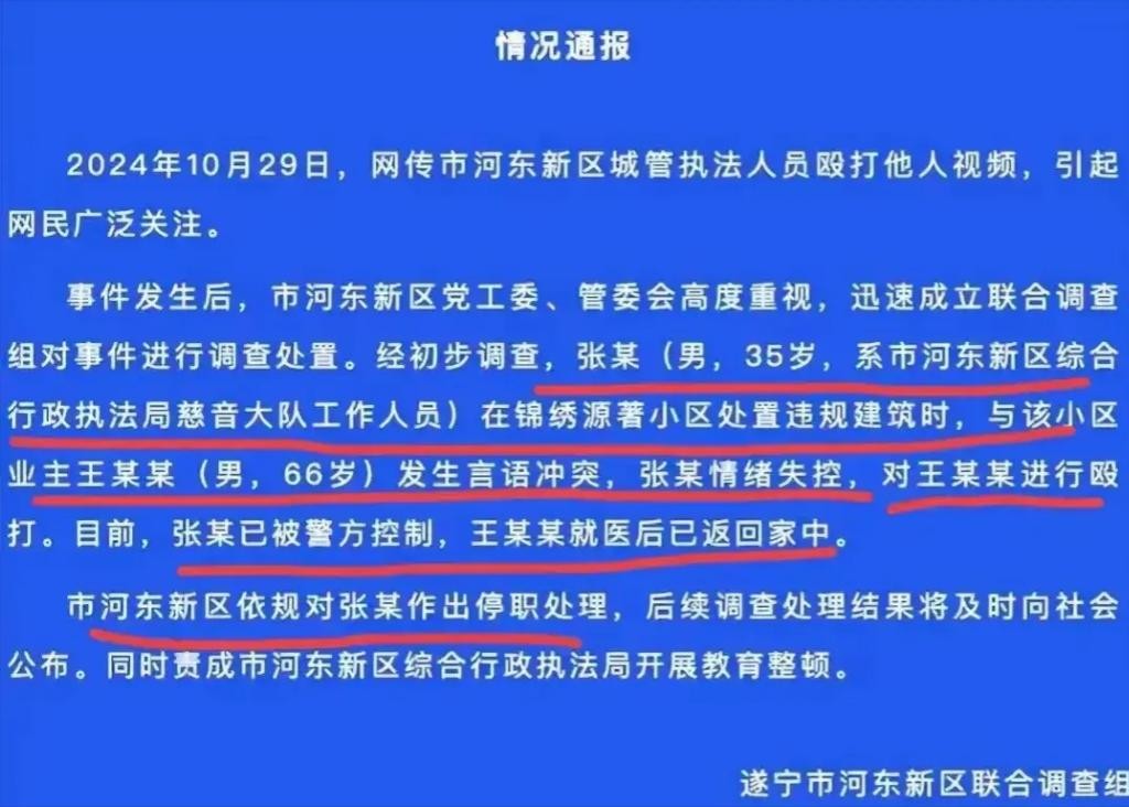 面对这样的舆论压力,当地政府很快做出了回应。涉事的城管被证实是临时聘用人员,目前已经停职并接受调查。警方也介入了,对涉事人员进行了行政拘留。