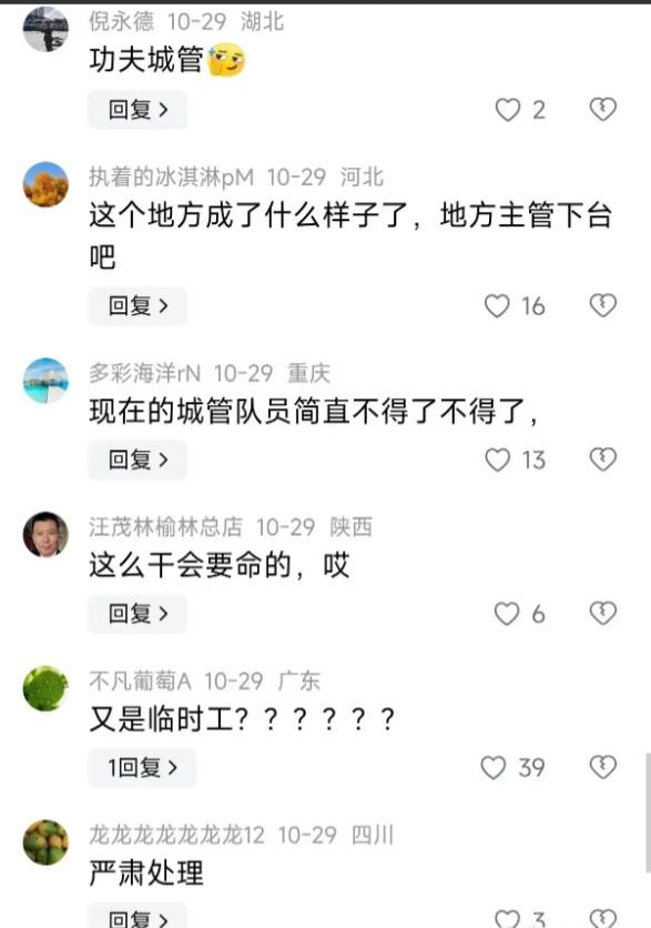 视频一曝光,立刻引发了网友的强烈谴责。大家纷纷表示,这根本不是执法,简直就是打人!有网友愤怒地说:“城管打人事件层出不穷,每次都说要整改,但为什么还是屡禁不止?”还有人质疑:“这些城管是不是把老百姓当成了敌人?执法难道就是为了欺负弱者吗?”