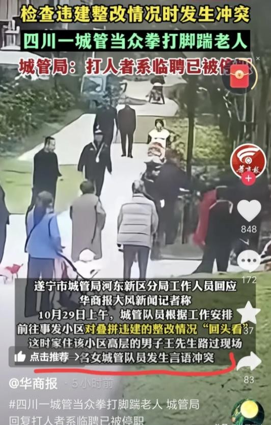 后续!66岁老人被城管殴打,已停职,官方称是临时工,受害者回应