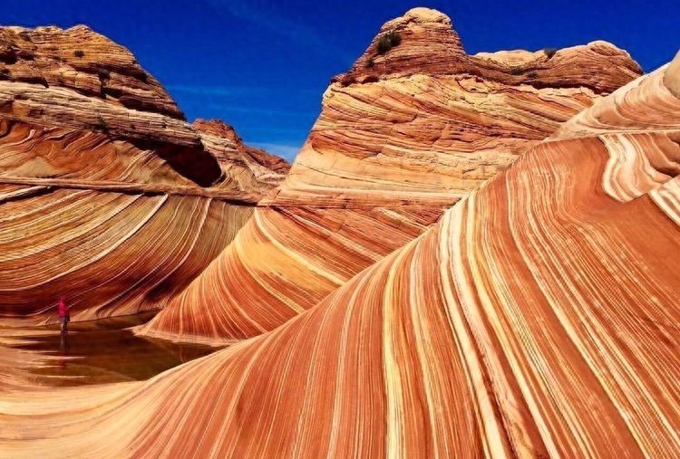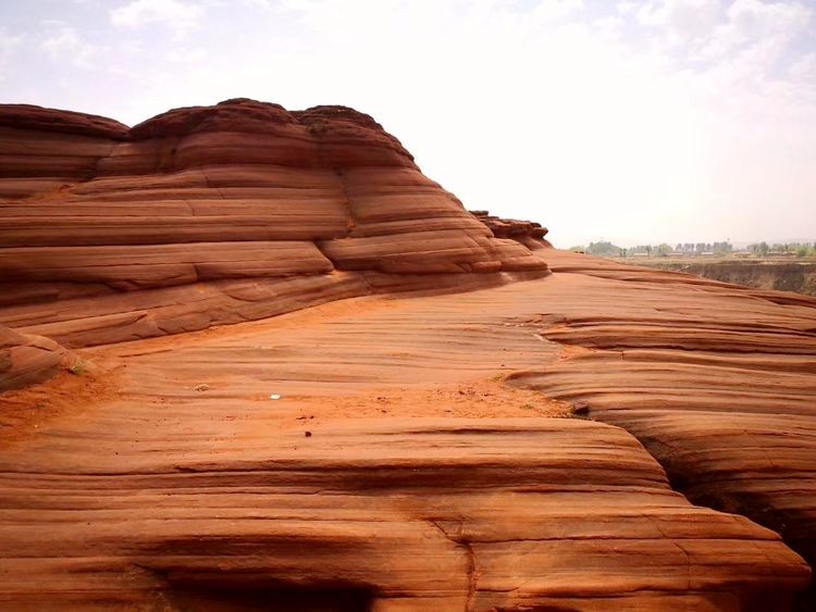 中国陕西省靖边的波浪谷与美国的波浪谷的差距并不大,都是红砂岩地貌,靖边的波浪谷更加年轻,只有6000万年,很多砂土还没有来得及凝固为岩石。