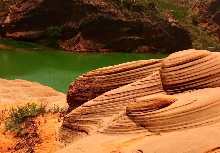 这里四面环山,绿水萦绕,方圆百公里被奇异的红砂岩所覆盖。红砂岩峡谷在风雨剥蚀下呈现出千奇百怪的姿态。因红砂岩上的纹路像波浪,故被称为靖边波浪谷。其独特的地质地貌和神奇的外观,被称为中国最美的波浪谷奇观。
