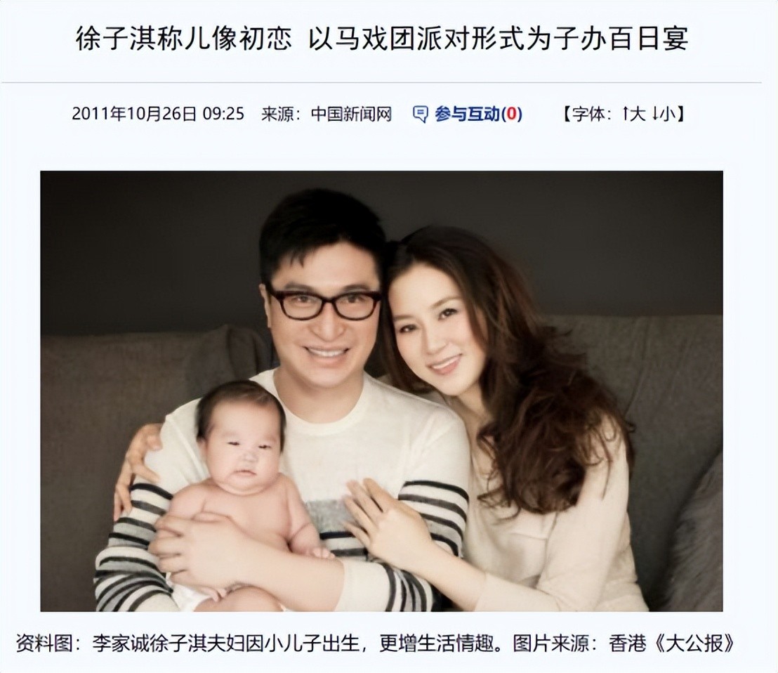 徐子淇称儿像初恋 以马戏团派对形式为子办百日宴 中国新闻网 2011年10月26日 09:25
