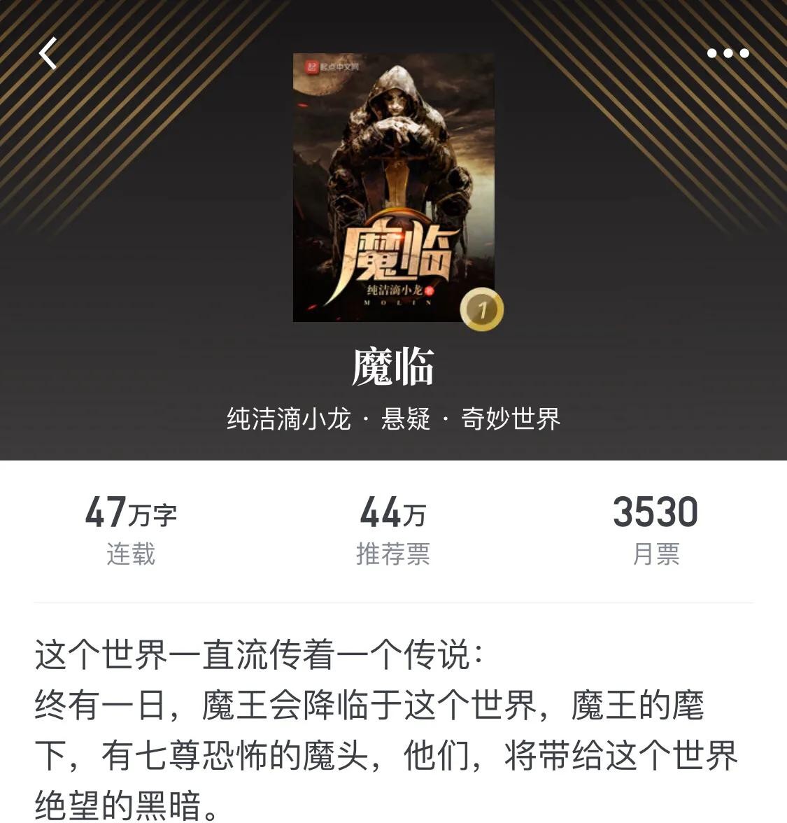 意外地好看。所谓的魔王,其实就是超凡者嘛,这样想的话,设定上的惊喜就少了很多。主角开局就自带7个超凡者,超凡者的实力与主角的实力挂钩,随着主角实力的提升,超凡者的实力就会不断解锁。这是一群超凡者在(暂时)中武世界不甘无所事事而走向争霸的故事,大概可以这么说?可是这故事出乎意料的让人喜欢,超凡者里有僵尸有吸血鬼有魔童有精神系军师等,混在一起,剧情非常流畅。