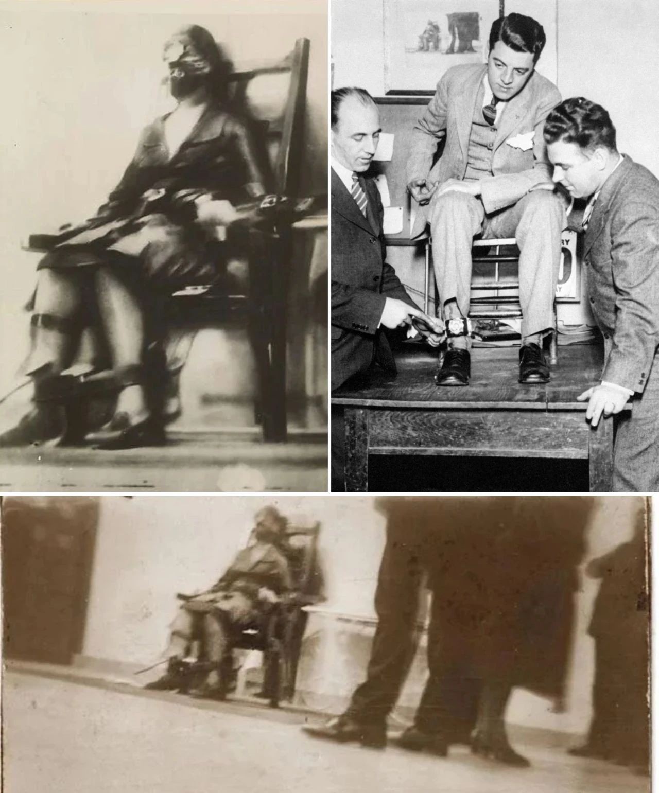 1928年,历史上第一个被电椅处死的人:露丝·斯奈德。有趣的是,当时摄影师是把相机绑在脚上偷拍的,他靠这张照片赚了100美元,在这之后任何观看行刑的人都不需掀起裤腿进行检查…