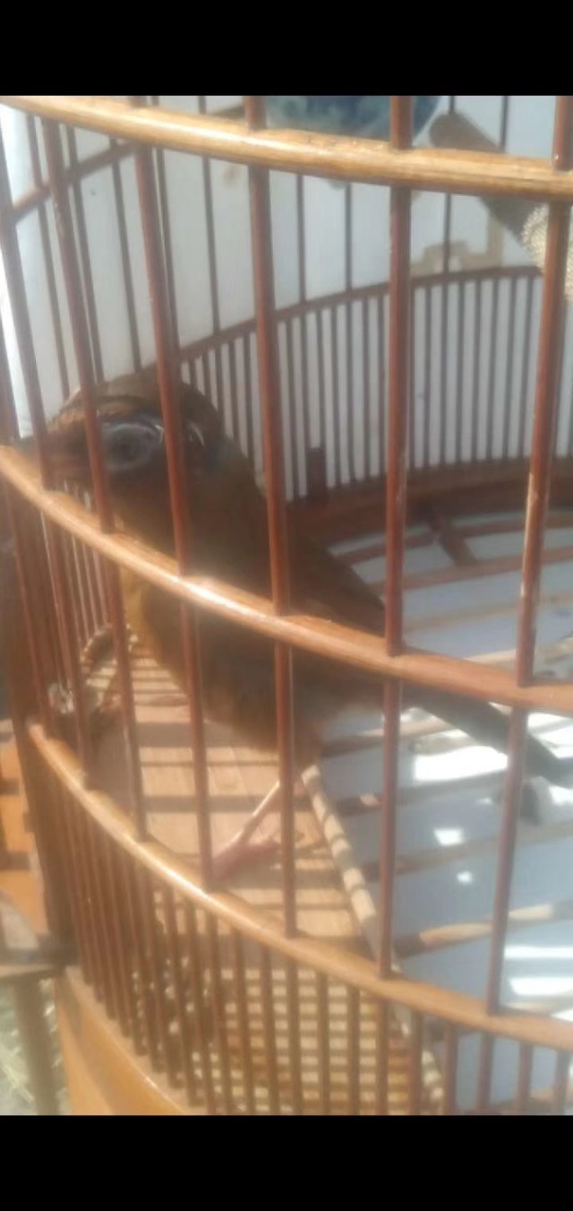 5.照此喂养程序一直坚持不断,仔细观察鸟的表现。若相对大方一点,野性没那么重,也可以逐渐小叫后,可慢慢掀开半边笼衣了;也可以有选择的外出遛放,挂在角落边。鸟若打嗑带帽,则立即远离,防止鸟被压性,我多数是先封笼遛放,让生鸟慢慢适应,待人少清静后敞半笼让生鸟叫透。在生鸟阶段,我都不上沙杠打磨脚,正常的跳动还是要。有的仔山鸟从生鸟到成熟后都相对较野,防止鸟挂伤甚至挂落脚趾。