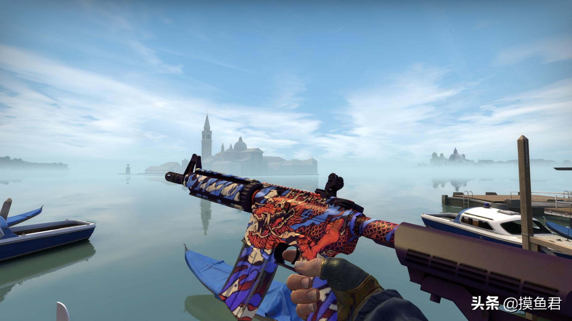 这把武器使用蓝底红龙图案进行了自定义涂装。