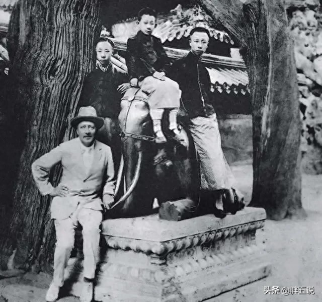 溥仪和帝师庄士敦、弟弟溥杰等人在紫禁城大树下的合影;庄士敦作为溥仪帝师,让溥仪了解到外面世界,并一度让溥仪产生了到外国留学的念头。