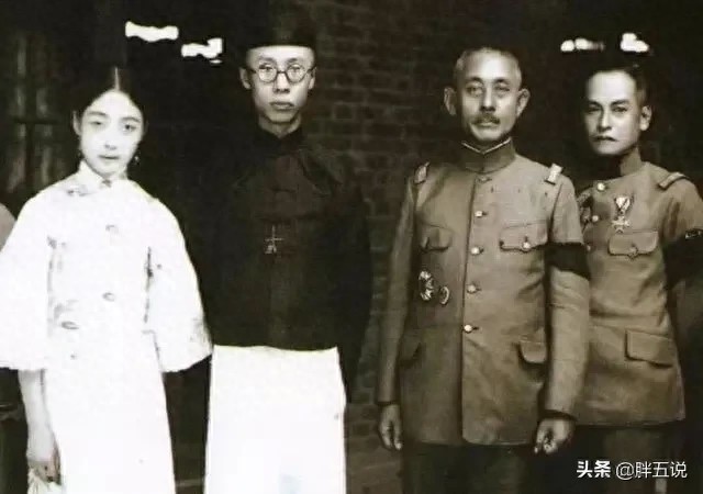 溥仪夫妇在天津和日军高官的合影。溥仪被赶出紫禁城后,辗转来到天津;在天津待了数年后,就前往东北当“伪满洲国”的皇帝。