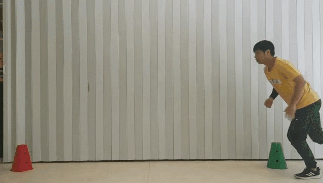 弯道跑是做圆周运动,跑的途中会受离心力的影响,需要将整个身体自然协调的向左倾斜一下,其向左的角度均应控制在7~10°左右。在室内没有条件的情况下, 可以尝试采用折返跑方式感受弯道跑。