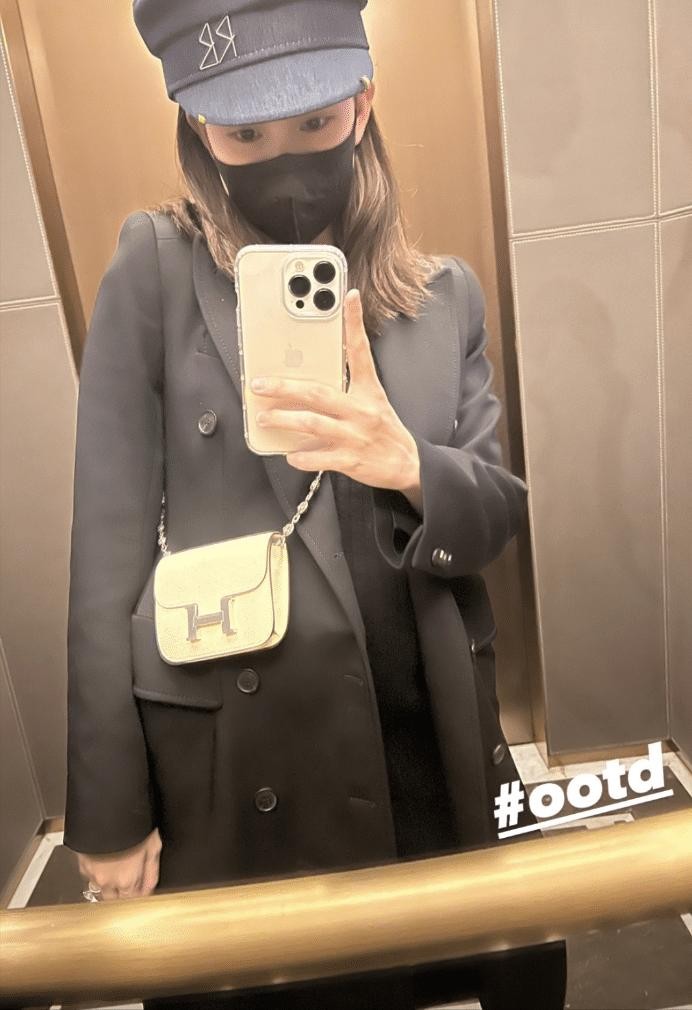 今天这件针织衫昆凌早在上个月就晒出过,同样的衣服多次穿,十分勤俭。