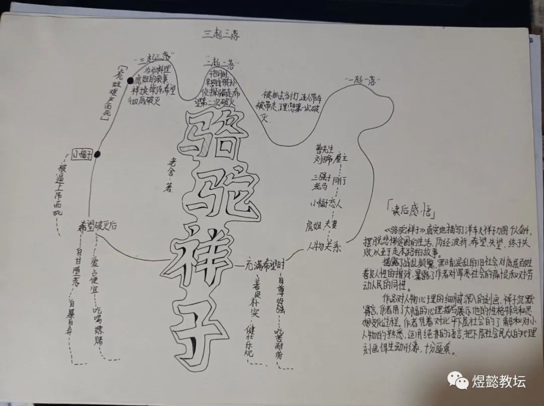 问渠那得清如许,为有源头活水来。—本好书就是一个好社会,它能够陶冶人的感情与气质使人高尚。书籍把我们引入最美好的社会,使我们认识各个时代的伟大智者。外物之味,久则可厌,读书之味,愈久愈深。罗江中学初2022级5班利用课内外时间组织开展了《骆驼祥子》整本书阅读系列活动。现将”读名著 晒笔记“手抄报(思维导图)绘画展示如下。