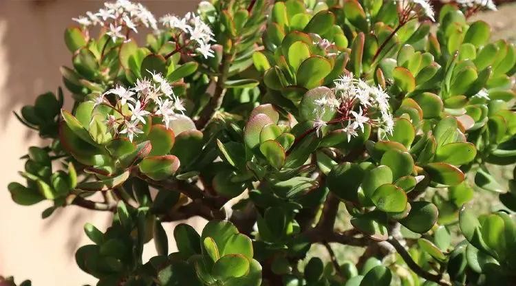 另外,玉树也会开花,花朵呈淡紫色,像一簇翩跹起舞的蝴蝶,点缀在碧绿的叶片之间,别致好看。不过它不太容易开花,所以若是你家养的玉树开花了,那就是一种很好的兆头,花旺人更旺!