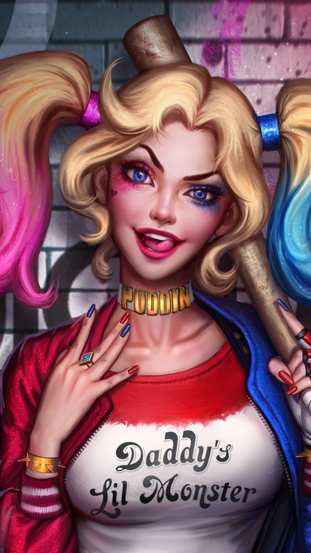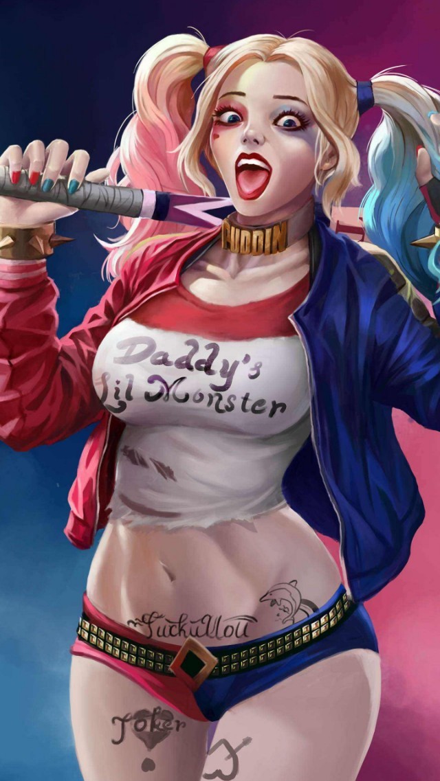 超清无水印全屏壁纸精选|你们要的小丑女,美艳杀手哈莉·奎茵