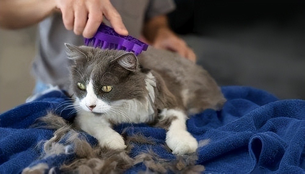 每天花十分钟给猫咪全身梳毛,把浮毛梳走,掉的自然就少了,而且梳毛相当于全身按摩,还能促进毛发生长呢。