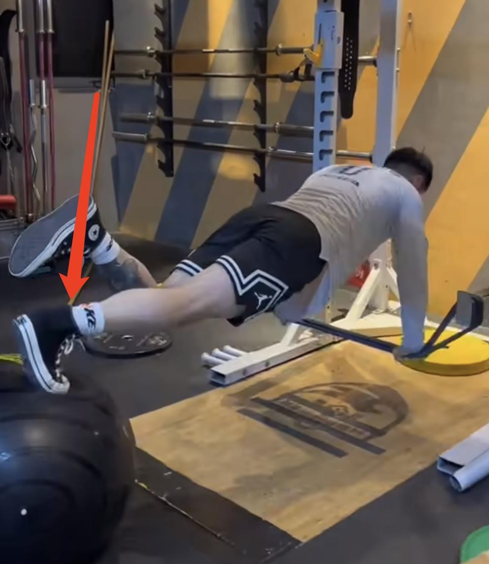 劲夫最强的应该还是他的后侧链和核心,单脚瑜伽球练俯卧撑。