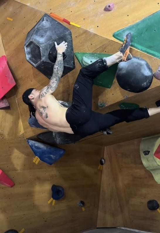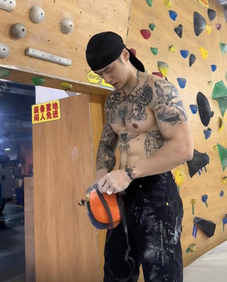 近段时间他又开始练习攀岩,第一次上墙就信手拈来,力量与技巧都无可挑剔。