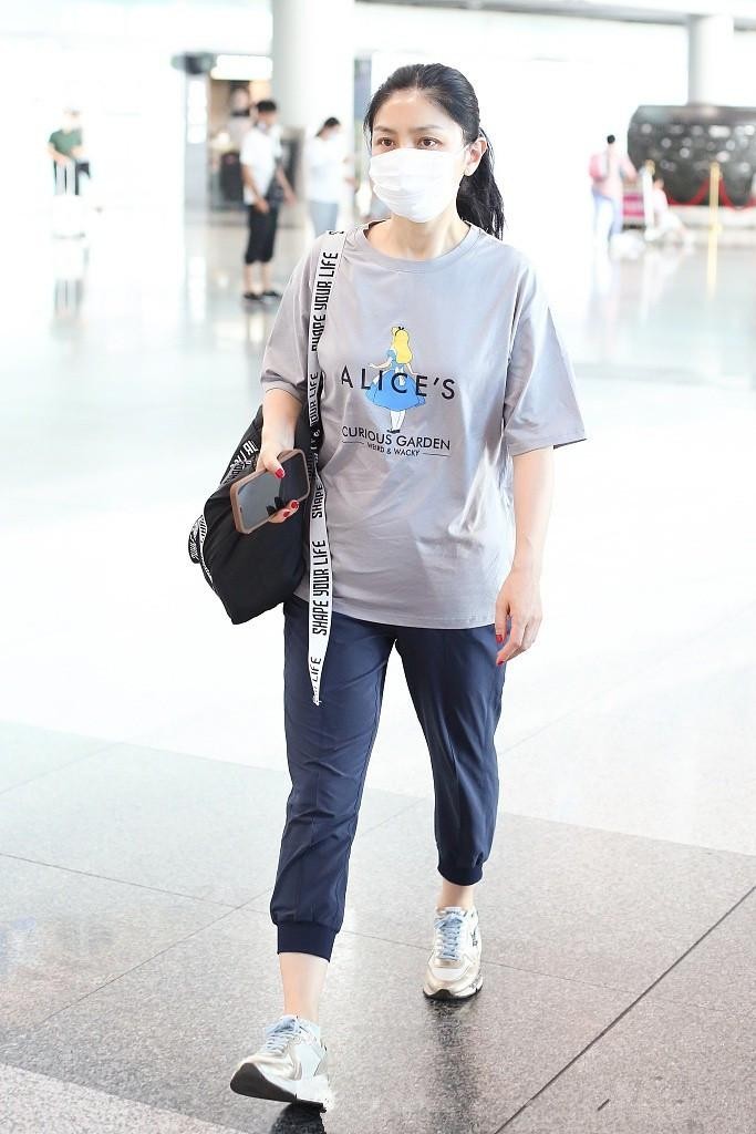 照片中如果上半身穿的是一件灰色的短袖,搭配着一条黑色运动裤也好看,但就是很显胖。说实话,她如果以前是这样的装扮,现在看的就觉得没什么奇怪,只不过她以前可以说是非常的漂亮,也很艳丽。现在她看的是越来越普通了,完全想象不到她以前是如何打扮的。