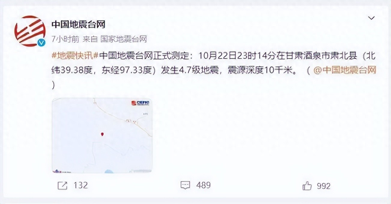 而在22日深夜,甘肃酒泉市肃北县也经历了4.7级地震。这次地震发生在北纬39.38度,东经97.33度,震源深度为10公里。肃北县是甘肃省面积最大的县,总面积达6.67万平方公里,常住人口为1.51万人。震中距离嘉峪关市93公里,玉门市104公里,肃州区109公里,金塔县151公里,瓜州县183公里,以及西宁市497公里。根据中国地震台网记录,近5年内,震中周边200公里范围内共发生了33次3级以上地震,其中最大地震是2022年3月26日在青海海西州德令哈市发生的6.0级地震(距离本次震中98公里)。许多地方的网友纷纷表示明显感受到了地震的力量。