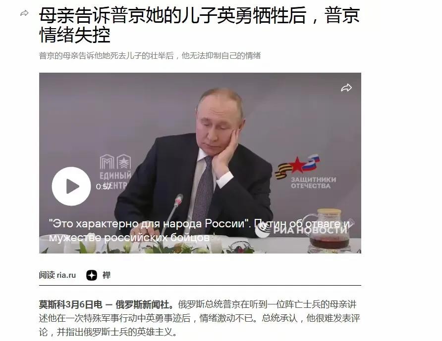 听完这个催人泪下的故事后,普京一时语塞,情绪失控,这无疑是对英雄的崇敬与哀悼,但背后是否仅止于此呢?