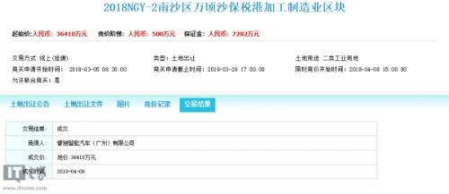 据广州市公共资源交易中心官网显示,4月8日,睿驰智能汽车(广州)有限公司以底价3.641亿元(36410万元 ),拍得广州市南沙区一块约601亩的制造业用地。