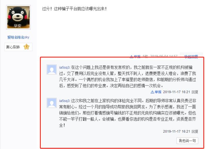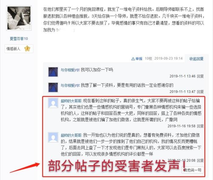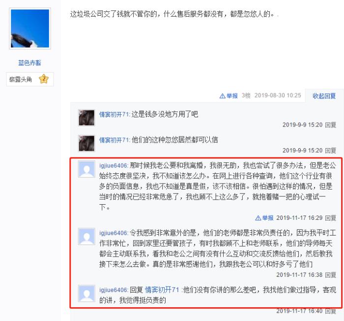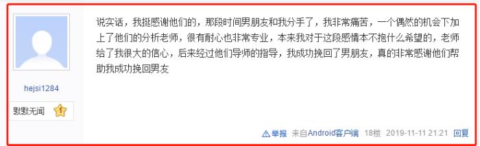 甚至陆陆续续有部分接受过我们情感咨询服务的客户主动找到诋毁帖子为我们正名: