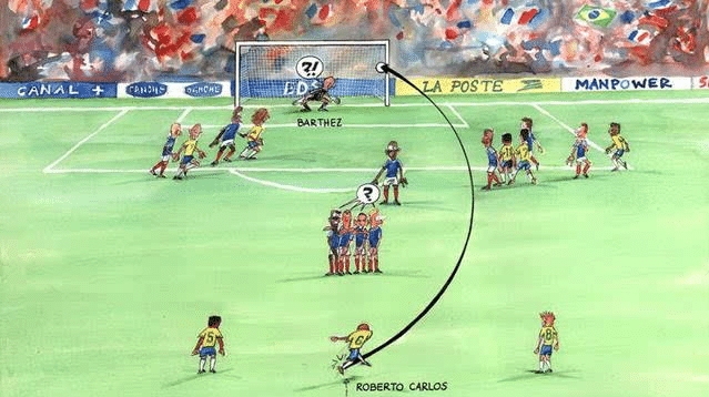 尽管已经过去了22年,球迷们仍对1997年法国四国赛上,卡洛斯打进的惊世任意球津津乐道。卡洛斯的惊世任意球被世人称为“违背物理学原理”。法国人一直在潜心于化解这个“卡洛斯的惊世任意球谜题”。甚至有的法国物理学家把它当成研究的课题。