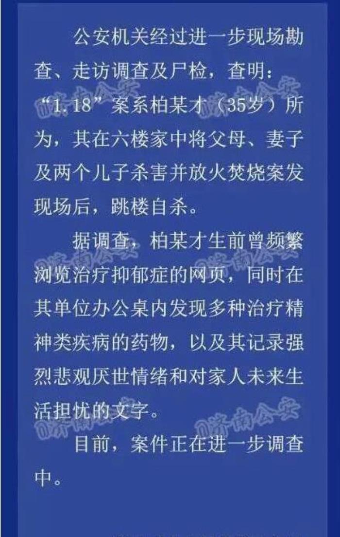 记得2025年年初,在济南某小区就出了这么一起扩大自杀的“灭门惨案”,患抑郁症的柏某在自己的家中,将父亲、母亲、妻子和两个年幼的儿子杀害并放火焚烧后,跳楼自杀。济南公安的调查结果公布的时候,引起了全国网友的一片哗然,大家不能接受这种情况,认为一定另有隐情。可柏某的抑郁症,以及其在考虑自杀的时候对家人失去自己之后生活的担忧,都是真实存在的,所以这就是抑郁症中最特殊,也是最可怕的怜悯性自杀。