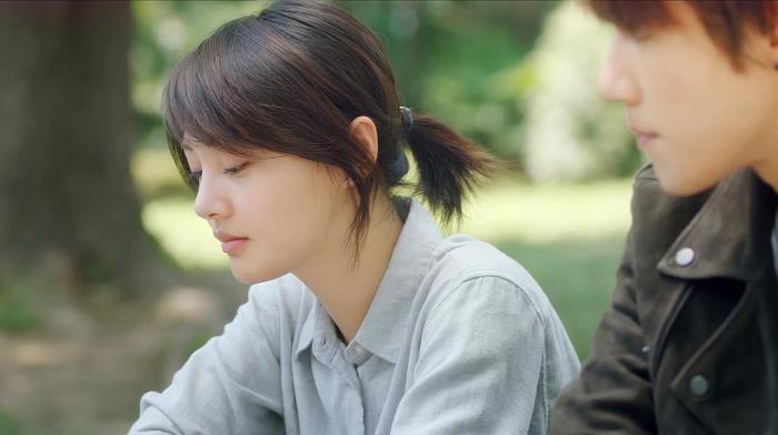 她噗嗤一下笑出来,有点害羞有点傻傻的。(后来发现是真傻)