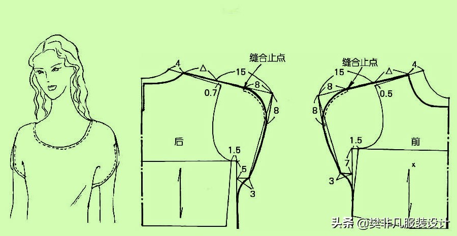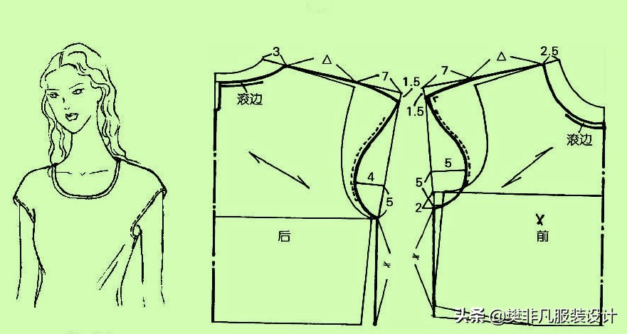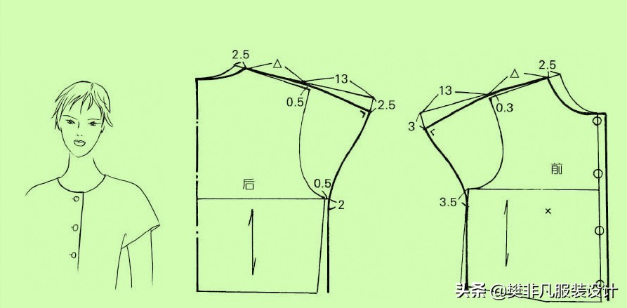 圆弧状的袖型,显得活泼而富有朝气。(见下图)