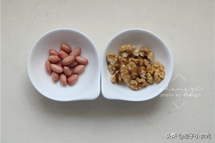 3、花生和核桃仁准备好,这两样的加入不但营养好,豆浆的口感也会更香浓。