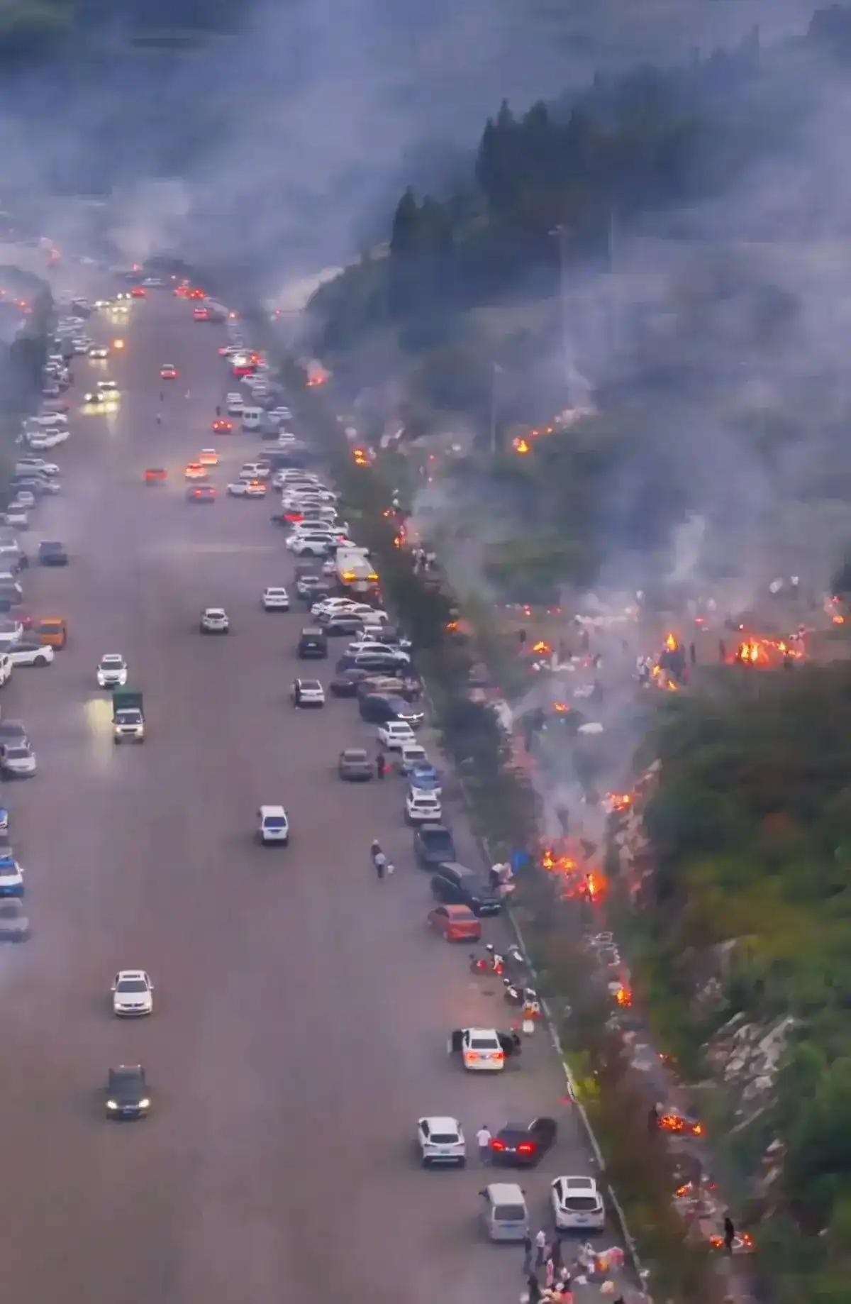 其实在网友爆料中所提到的位置附近甚至还聚集了许多私家车并且每家都选择了一个指定位置进行烧纸行为!