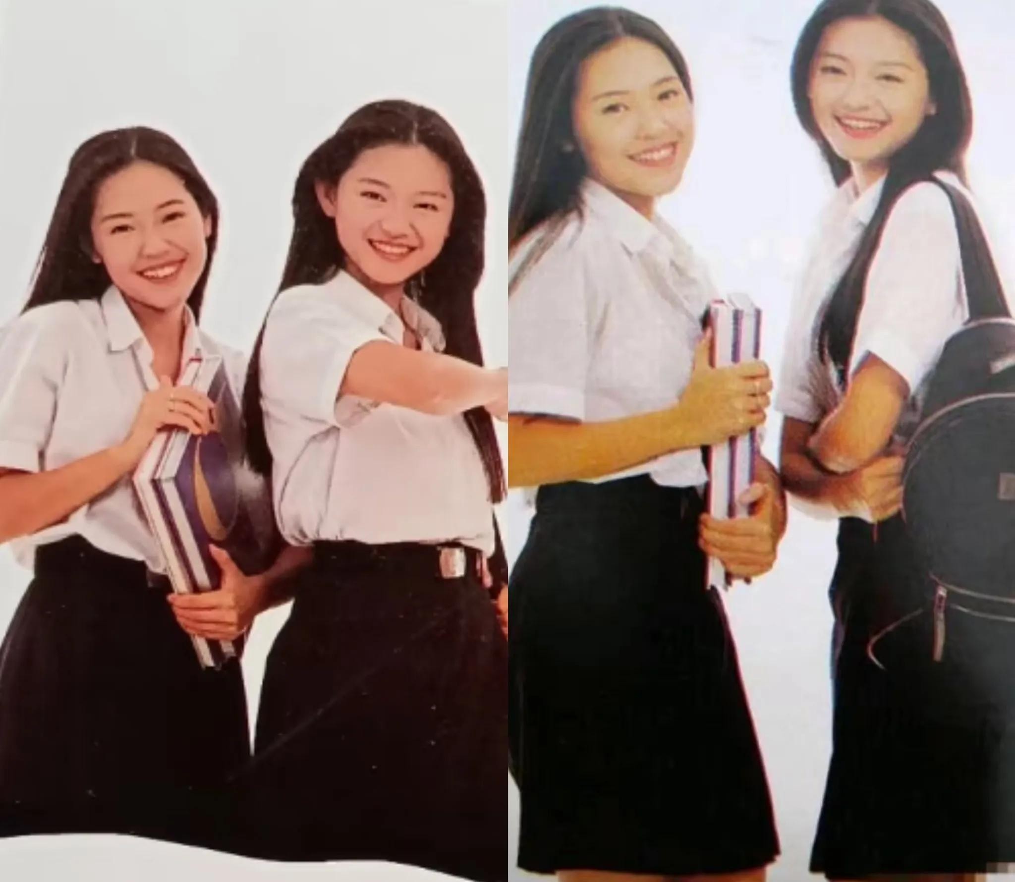 早期的大小S虽然长的不是很像,但两姐妹经常穿相同或者类似风格的服饰,显得两姐妹的少女感都很强,一眼望去真觉得她们像双胞胎一样。
