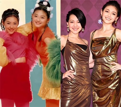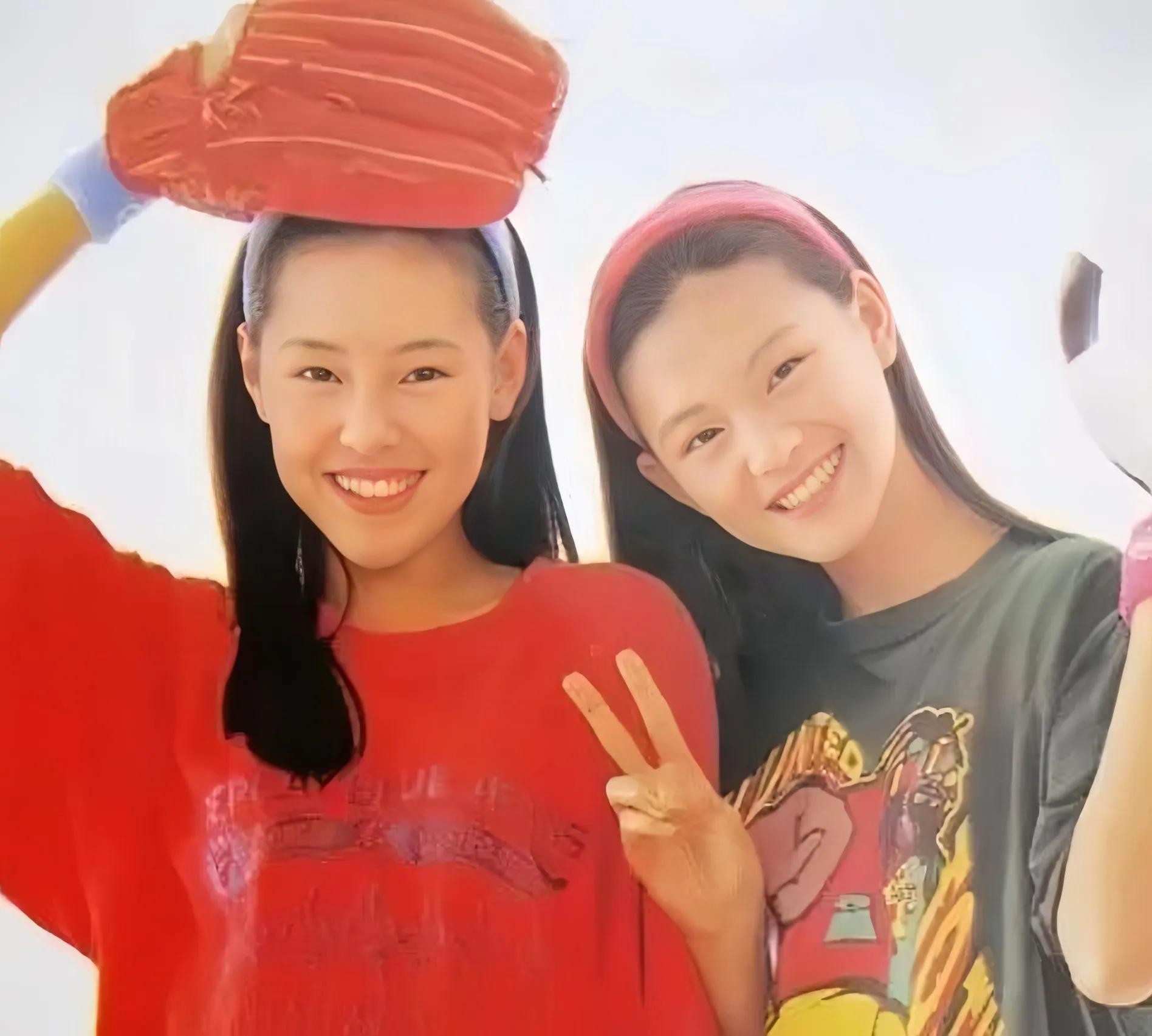 端详以上这组大小S的早期合影照片,二人在穿搭和发型上如出一辙,皆是青春洋溢的风格,并肩而立、古灵精怪、默契满溢,互动时亲密无间,举手投足间的亲昵劲儿,让人恍惚还以为她们两姐妹是双胞胎,其实大S比小S大了2岁。