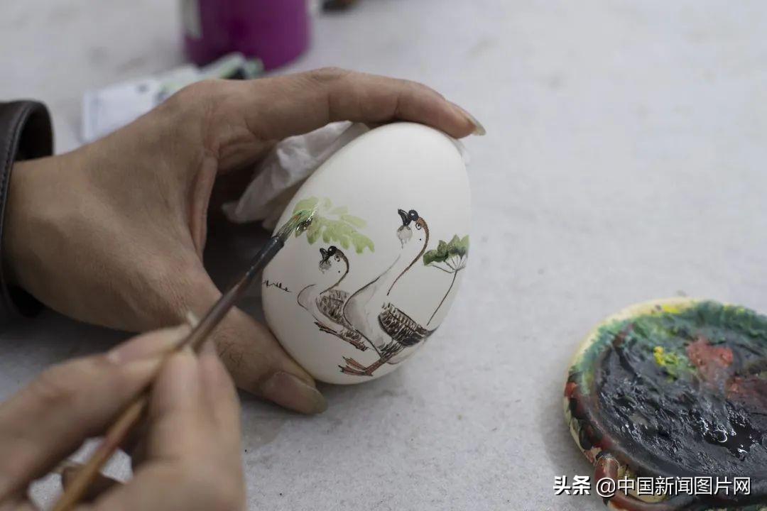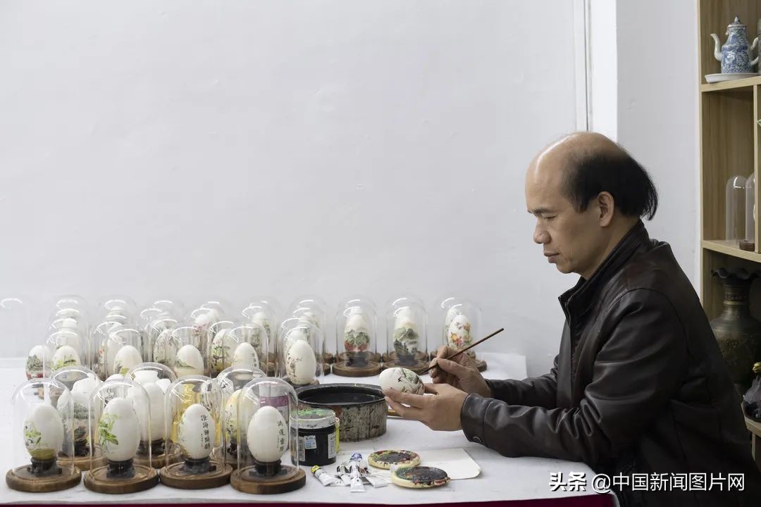 12月19日,广东省汕头市澄海区,杨焕文在鹅蛋上作画。